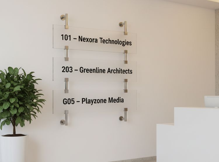 Guide your visitors with professional wayfinding signage for offices, malls, and public spaces.