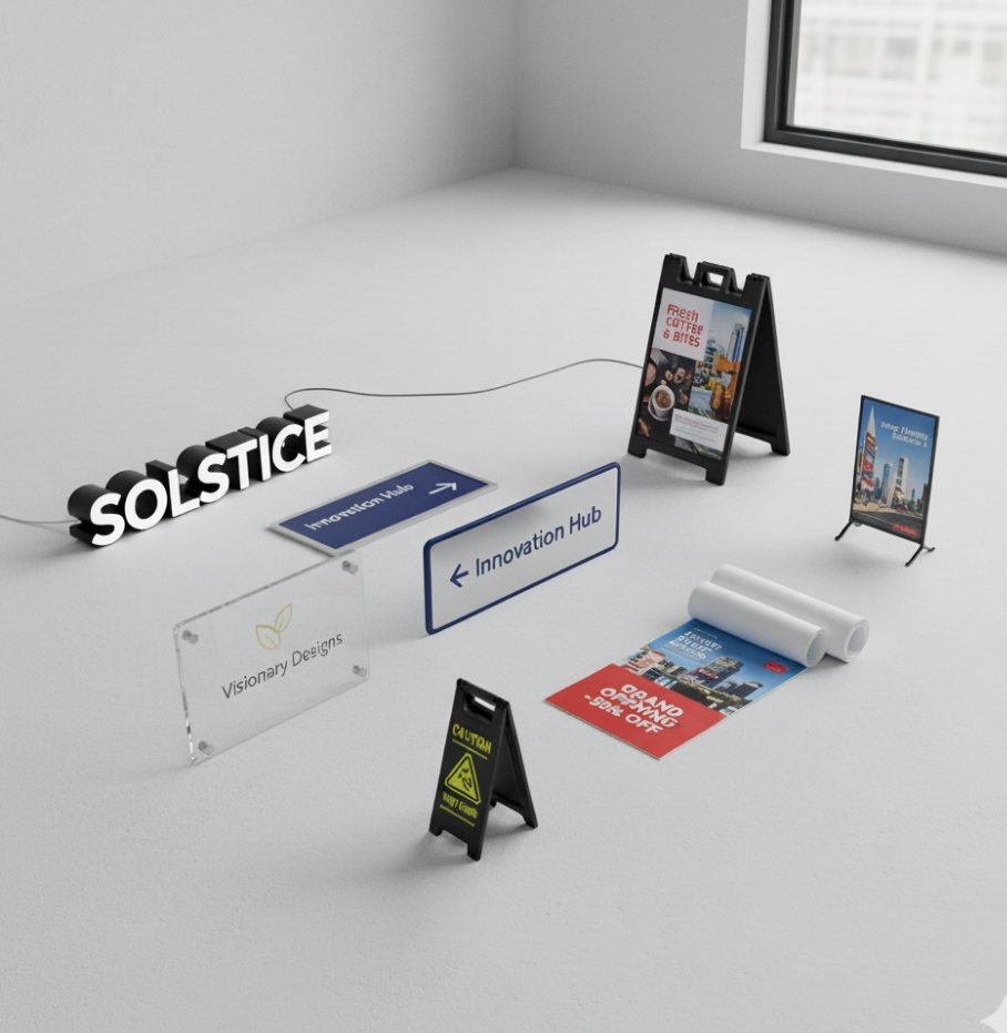 Yes, we design signage for both indoor branding and outdoor visibility.